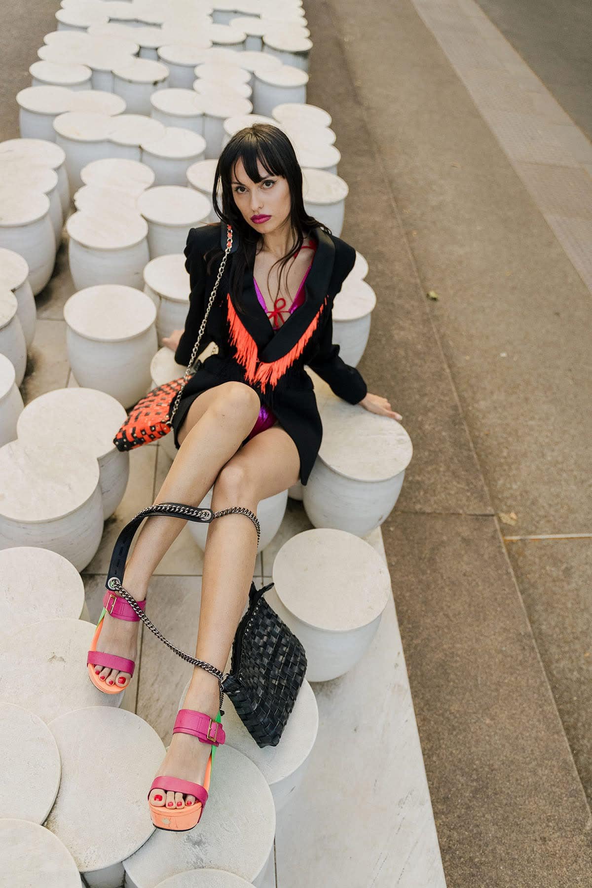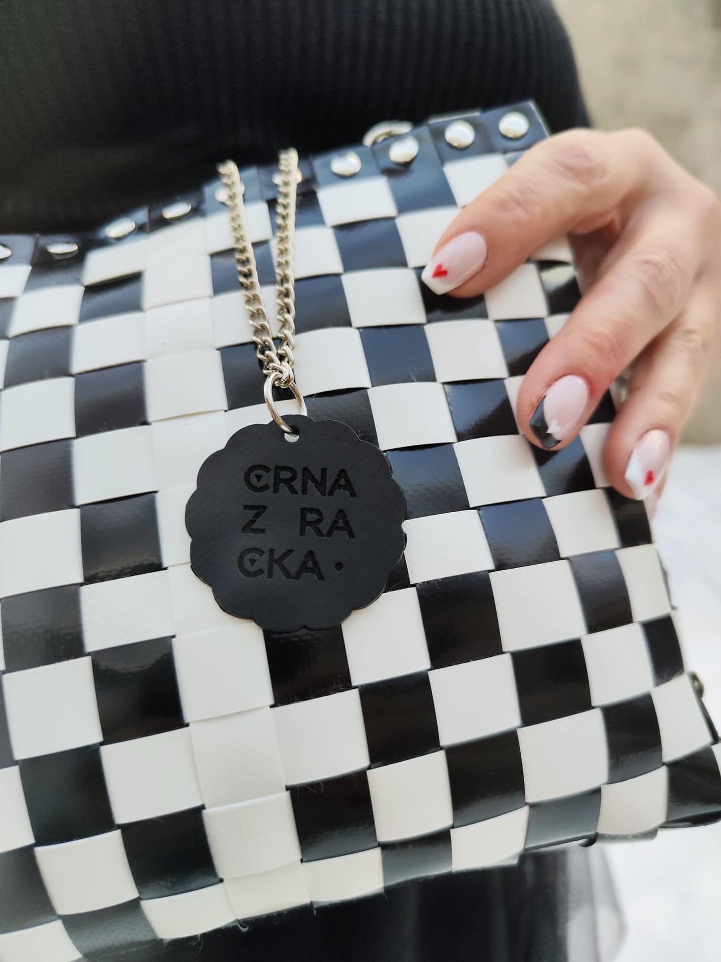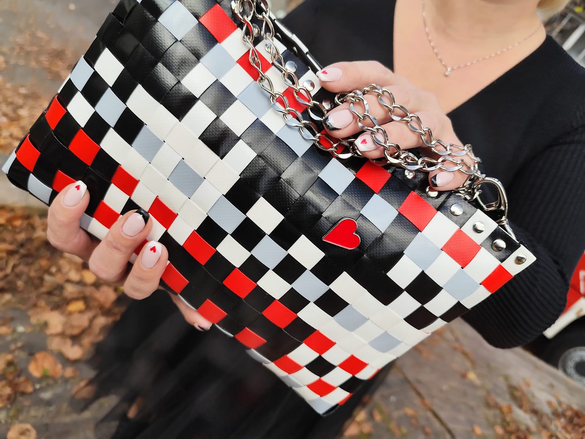 Dvostransko pletena torbica je igriva in nepremočljiva. Zaradi svojih lastnosti je idealna za urbane nomade in modne navdušence.