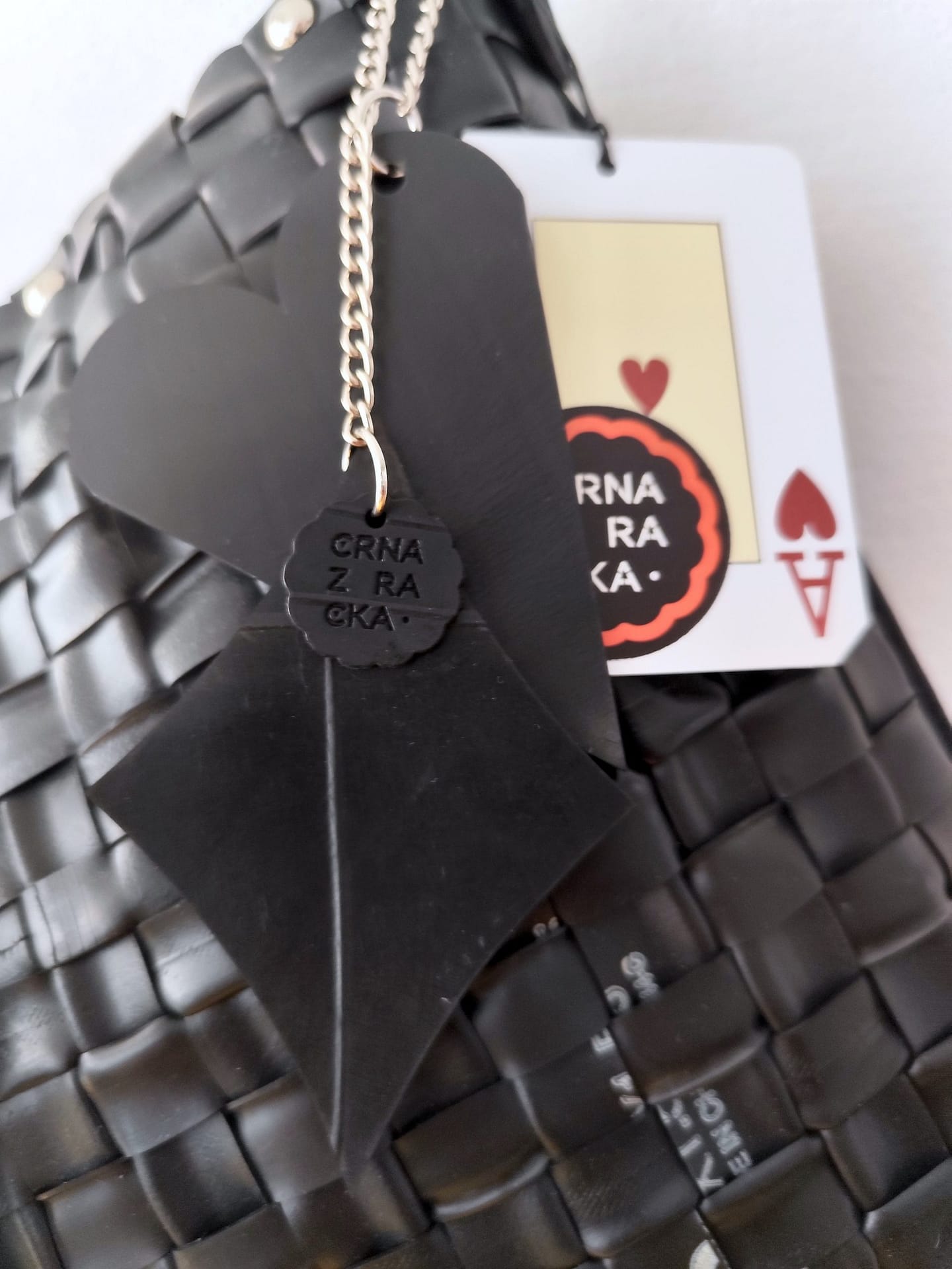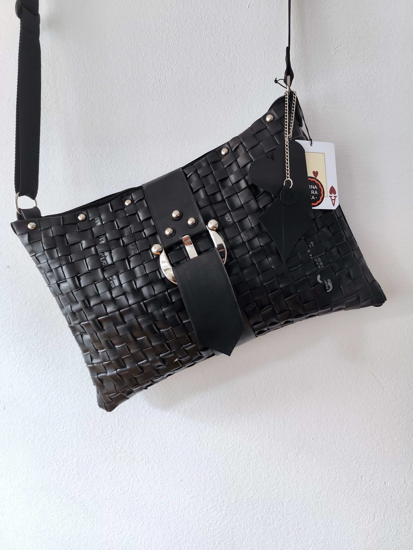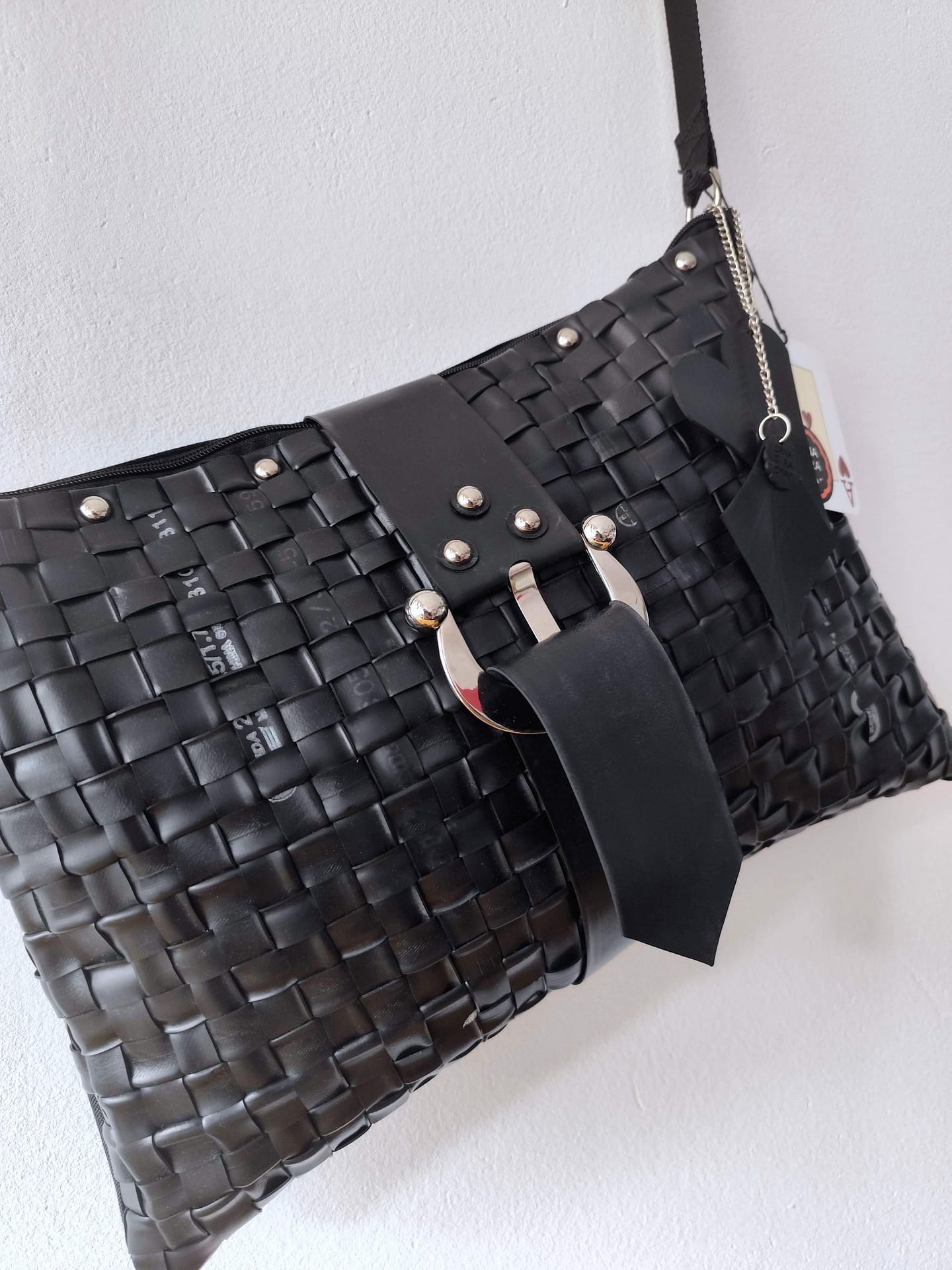 - zunanjost: reciklirana kolesarska zračnica z zakovici
