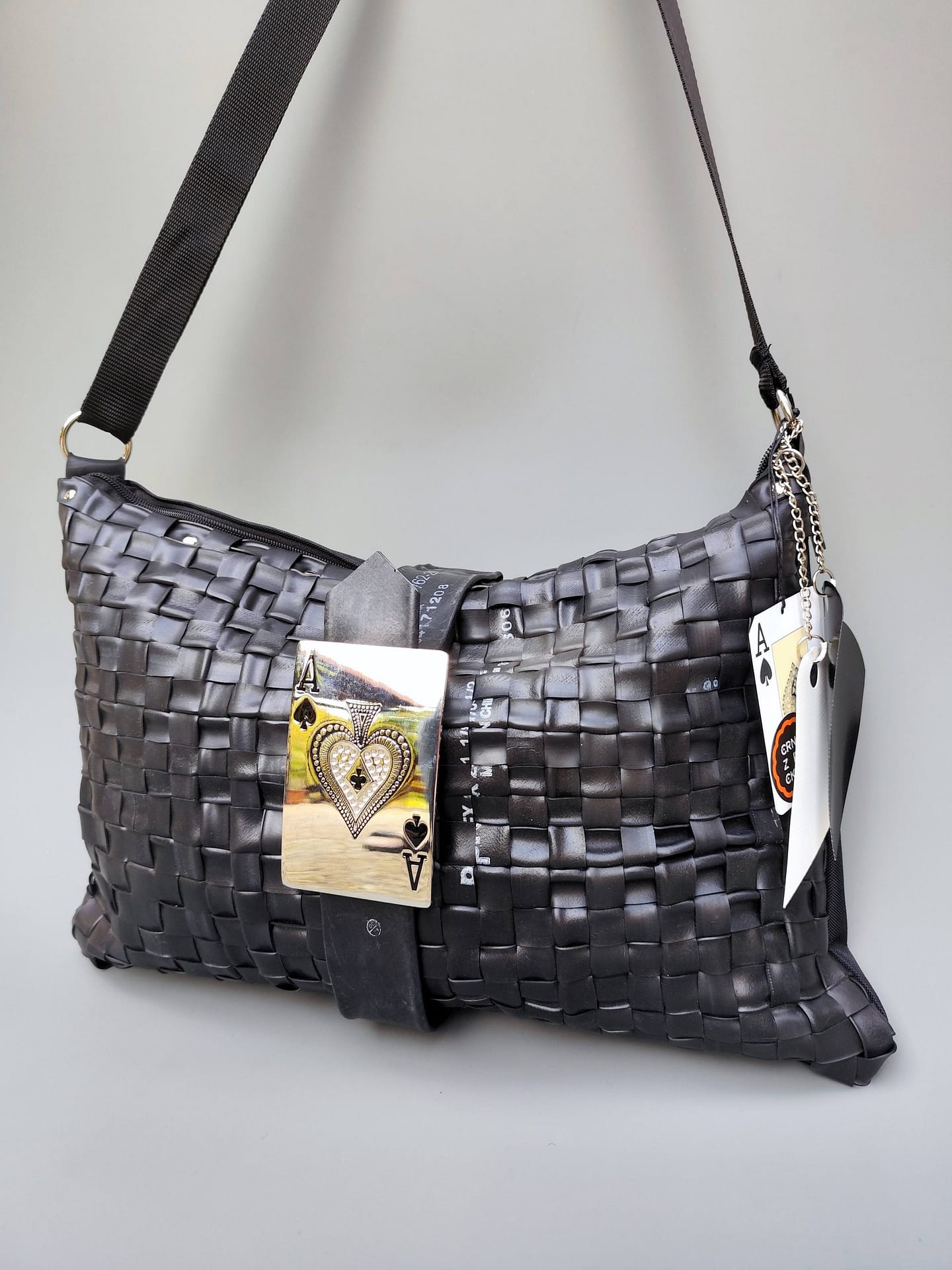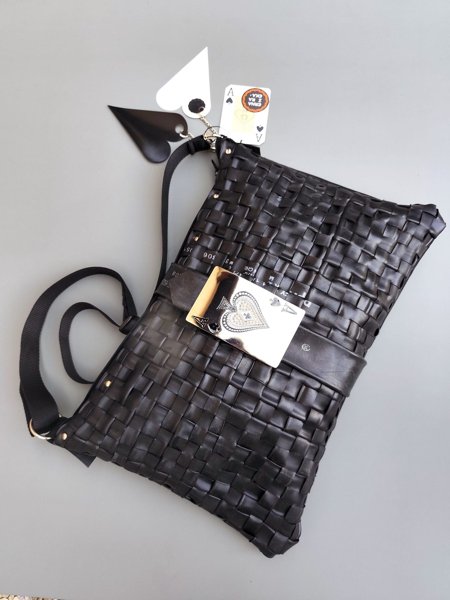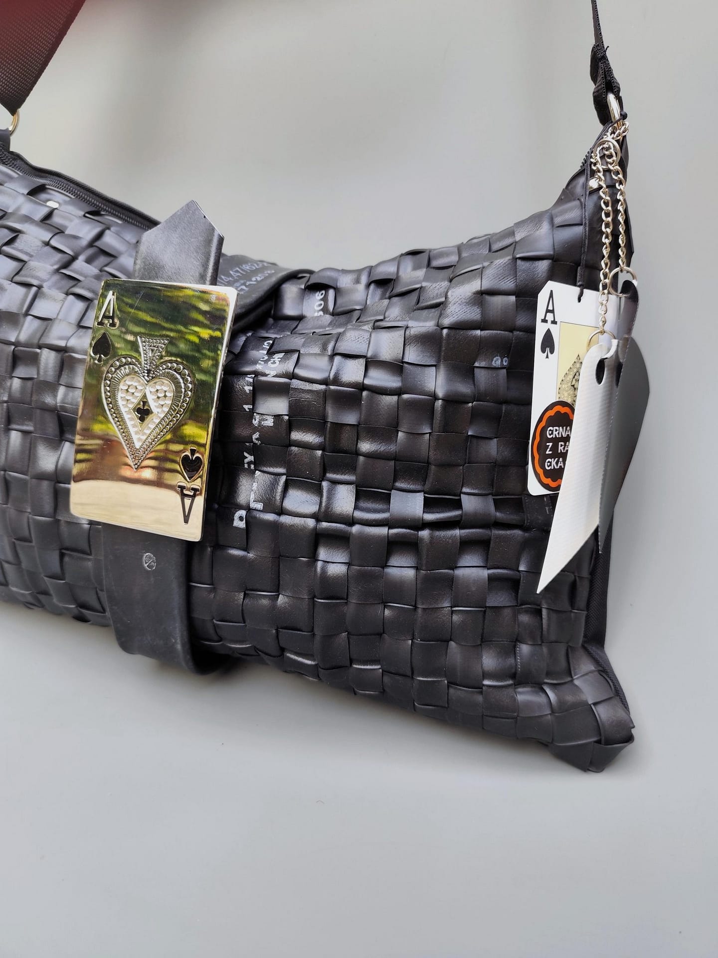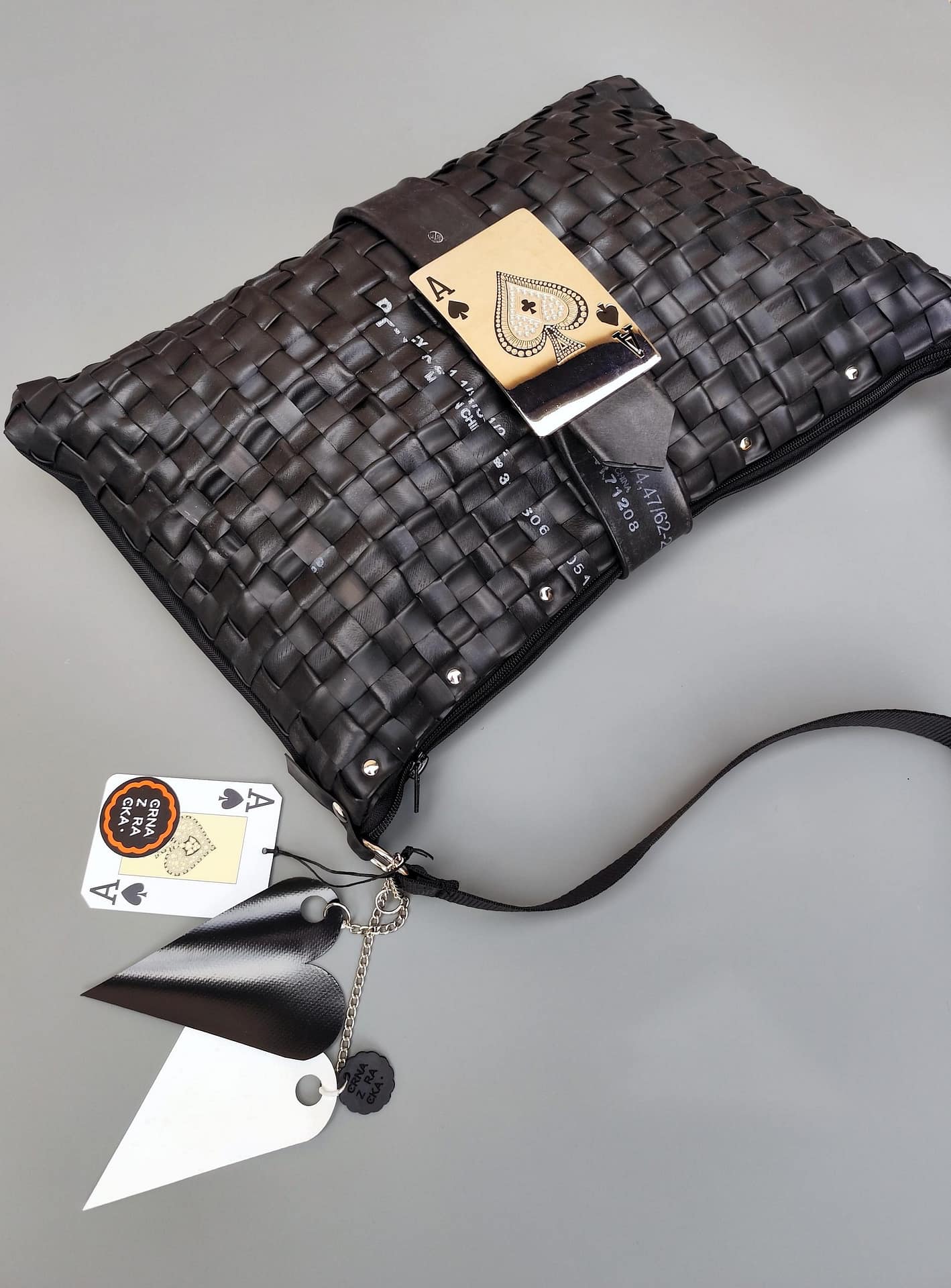• zunanjost: reciklirana kolesarska zračnica z zakovici