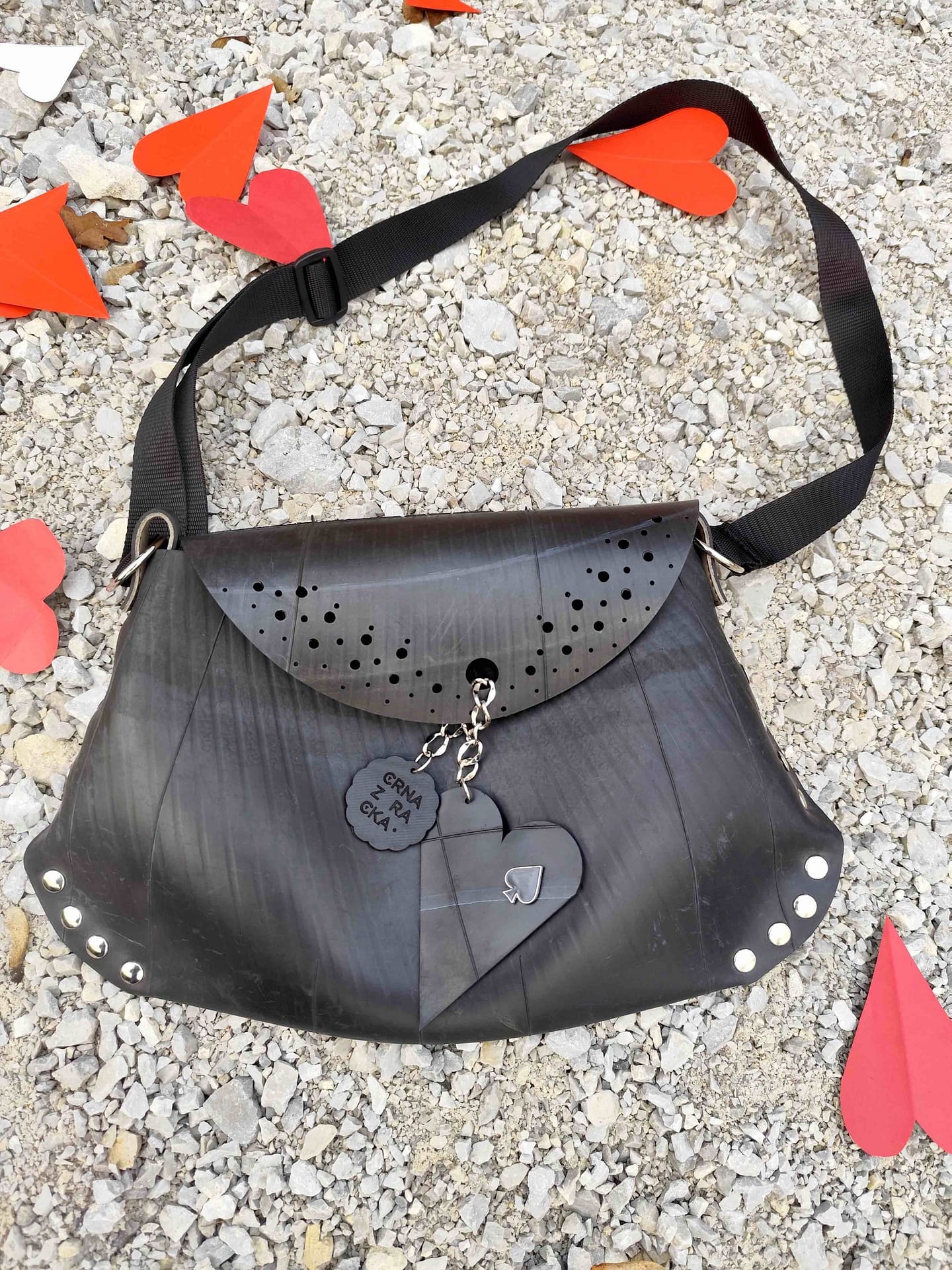 - zunanjost: reciklirana kolesarska zračnica